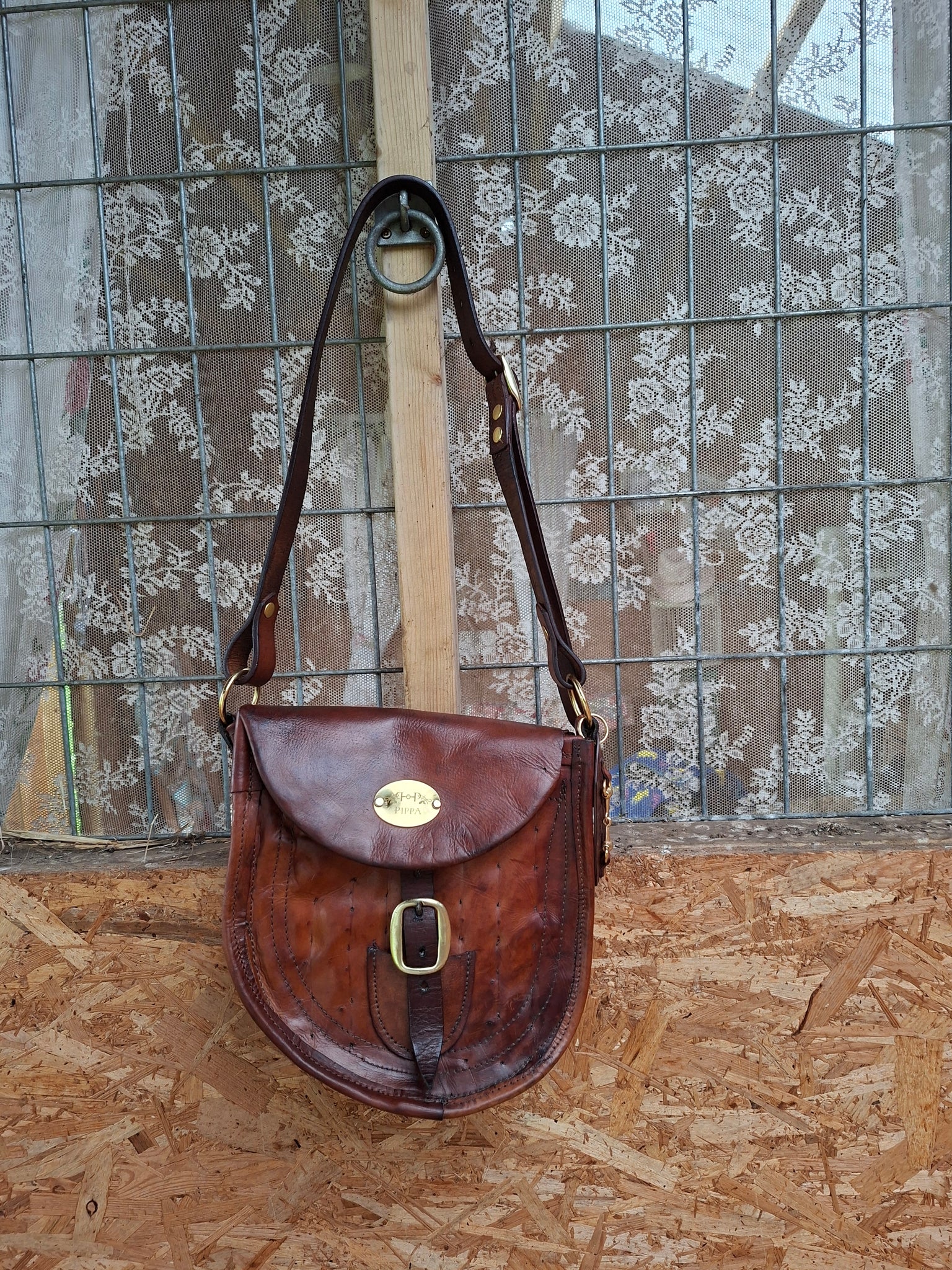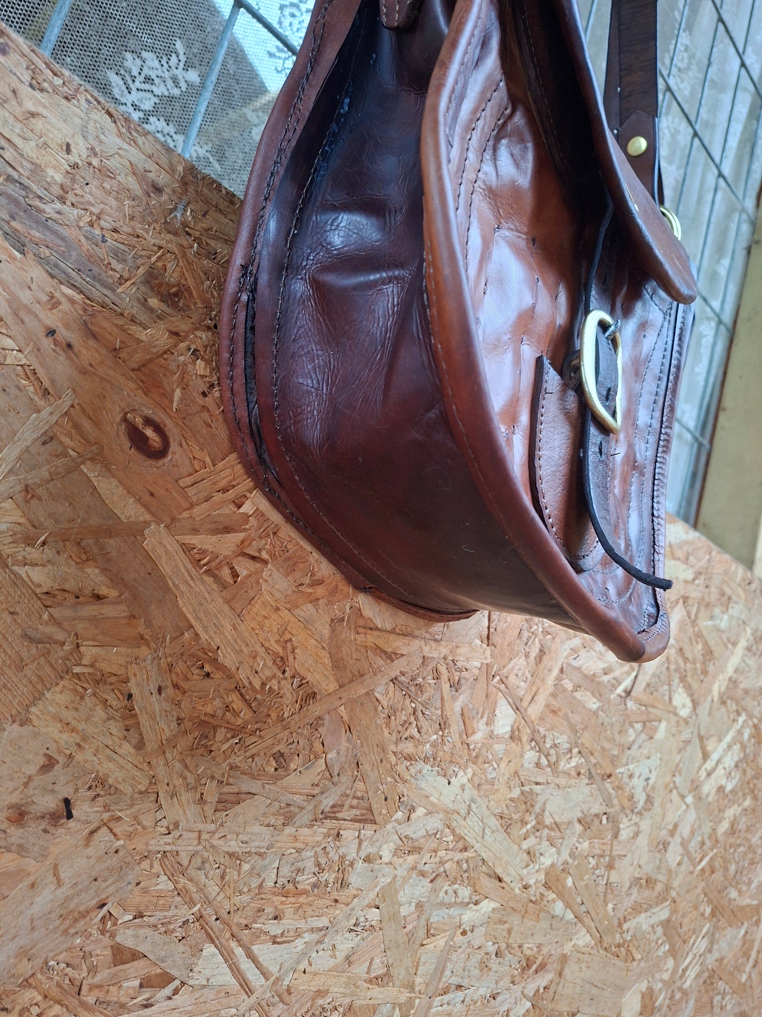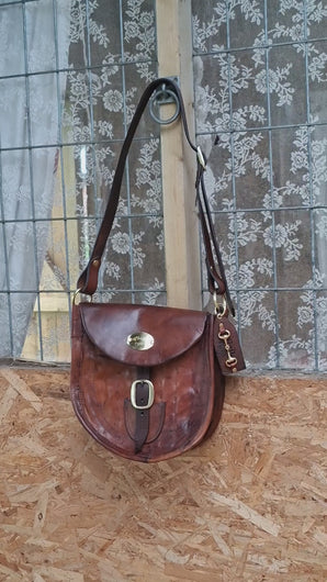 A lovely old stirrup leather makes for a perfect fully adjustable shoulder cross body strap with